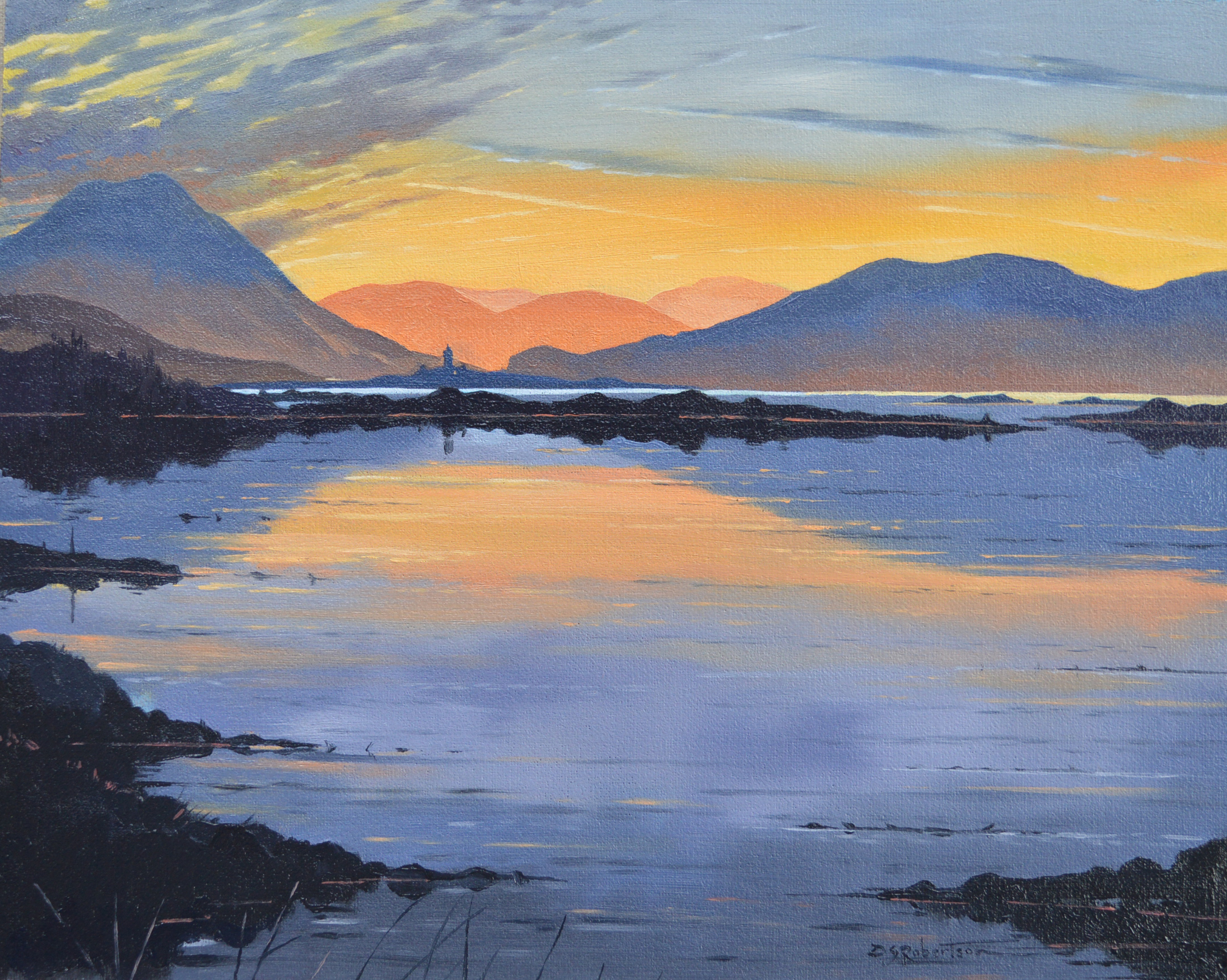 Ben Sgrithiel and Eilean Iarmain. Isle of Skye Original oil on linen 45 x 50 cm framed £890 email Derek Robertson to purchase. Category: Landscape Paintings Tags: Landscape, oil, painting, Skye