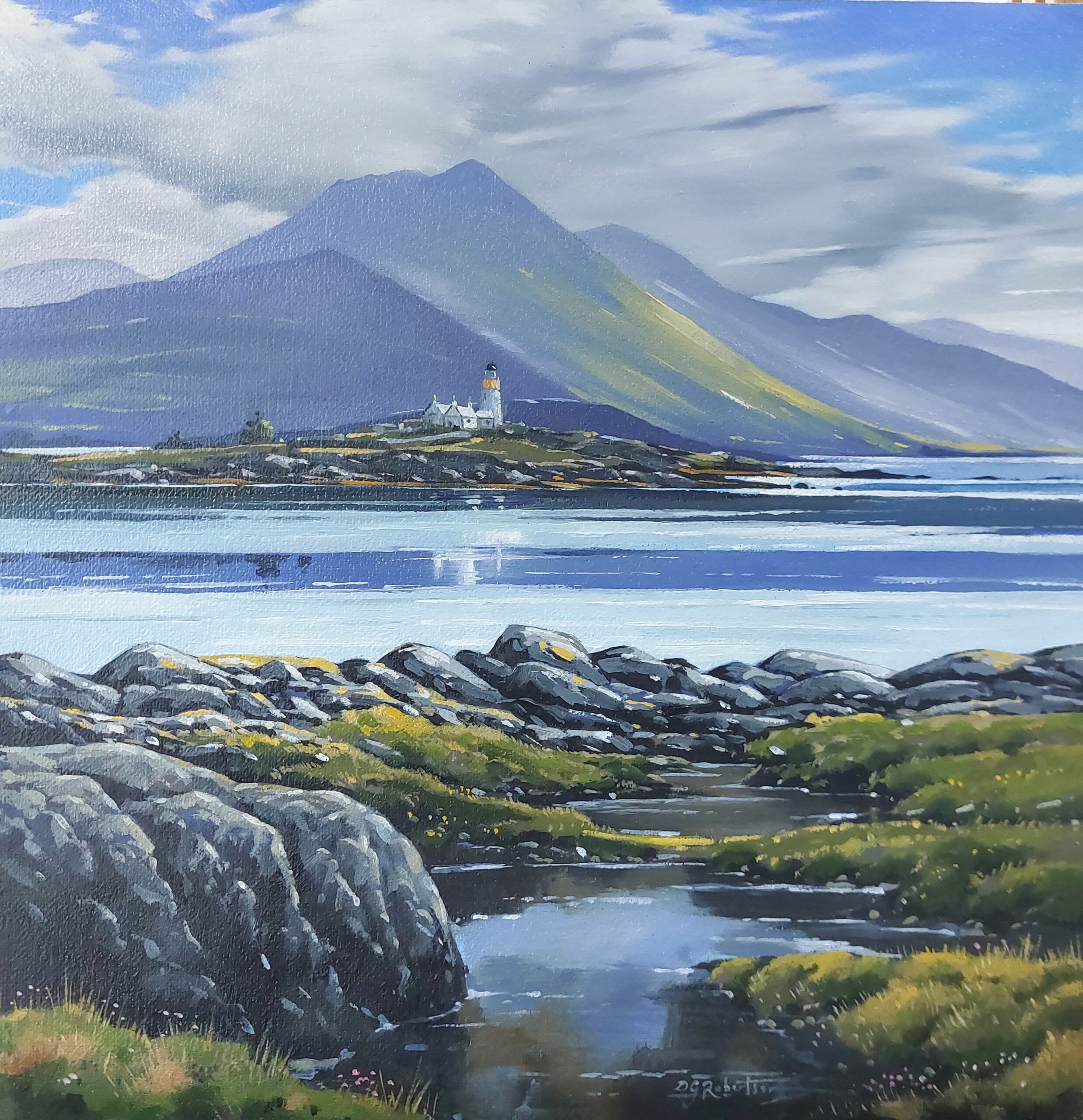 Ornsay Lighthouse, Across The Tide, Isle of Skye Original oil on linen 45 x 45 cm framed £790 email Derek Robertson to purchase. Category: Landscape Paintings Tags: Landscape, oil, painting, Skye