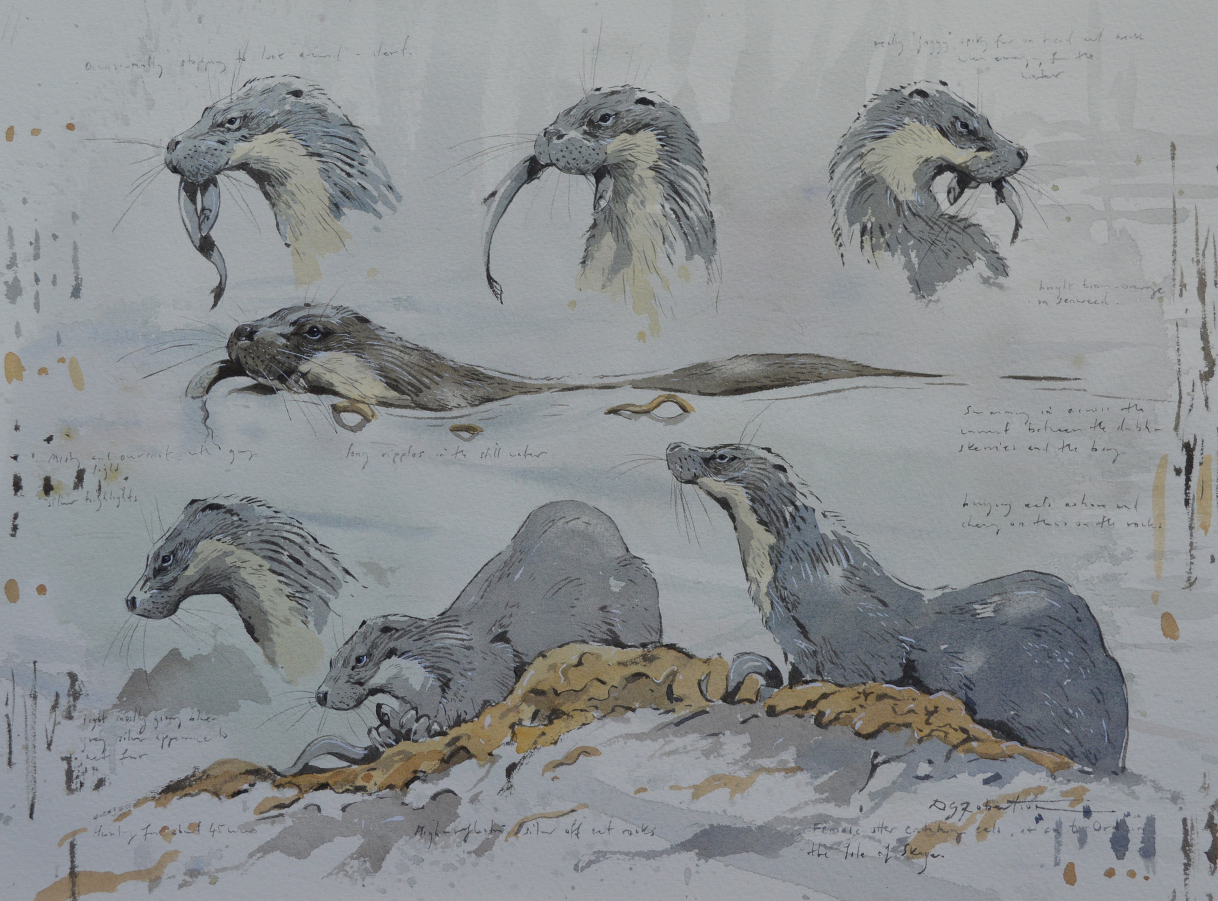 Otter Field Sketches Original oil on linen 50 x 60 cm framed £890 email Derek Robertson to purchase. Category: Wildlife Paintings Tags: otter, painting, watercolour