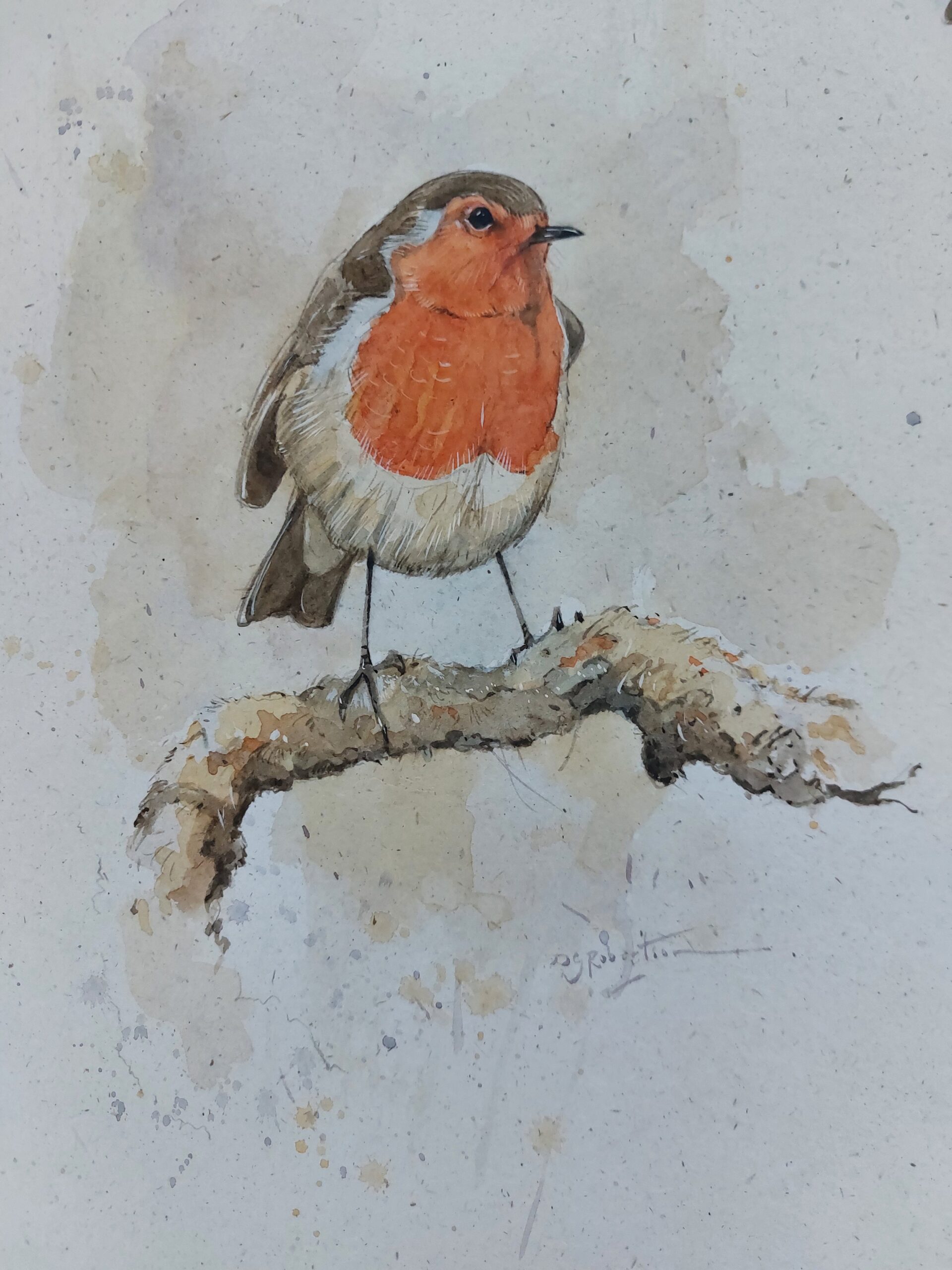 Robin Perched In Twigs Original watercolour 40 x 45 cm framed £690 email Derek Robertson to purchase. Category: Wildlife Paintings Tags: birds, painting, robin